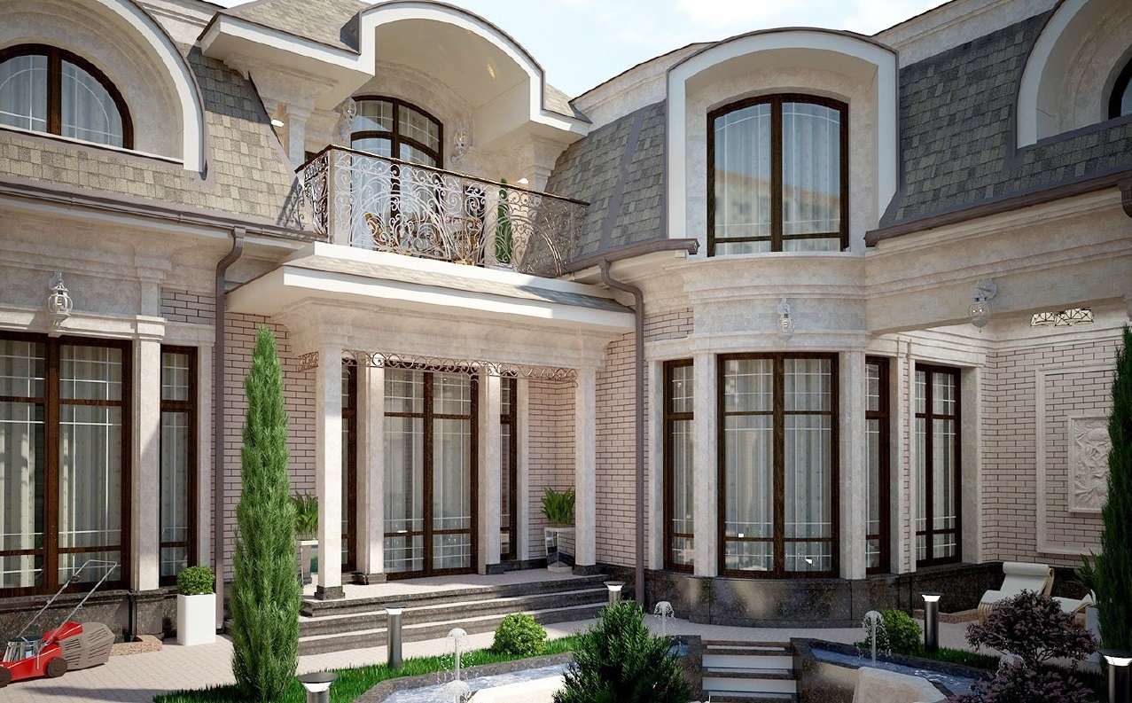 Под ключ - это полностью внутри дома, двор, фасад, крыша.